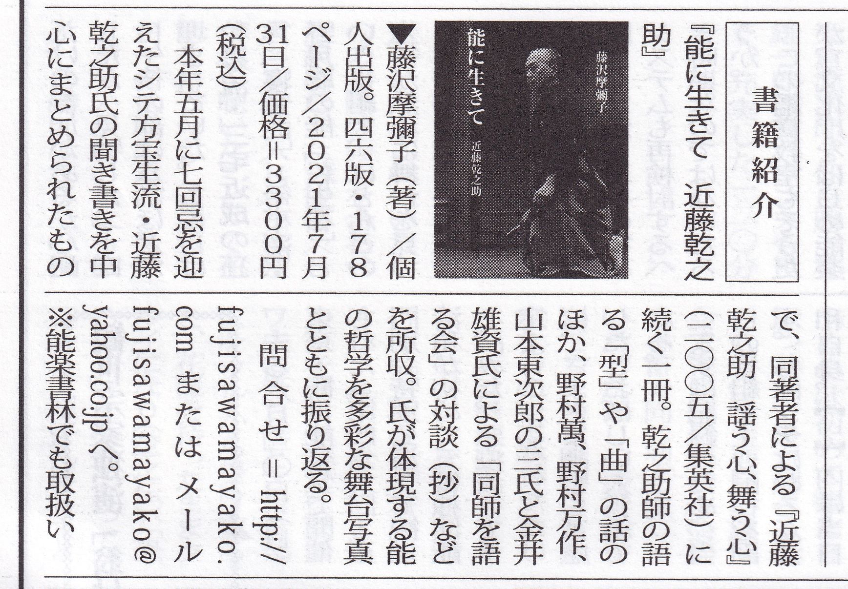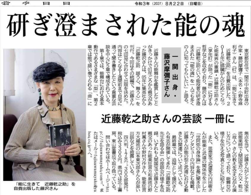 『能に生きて 近藤乾之助』2021年7月31日第一刷発行