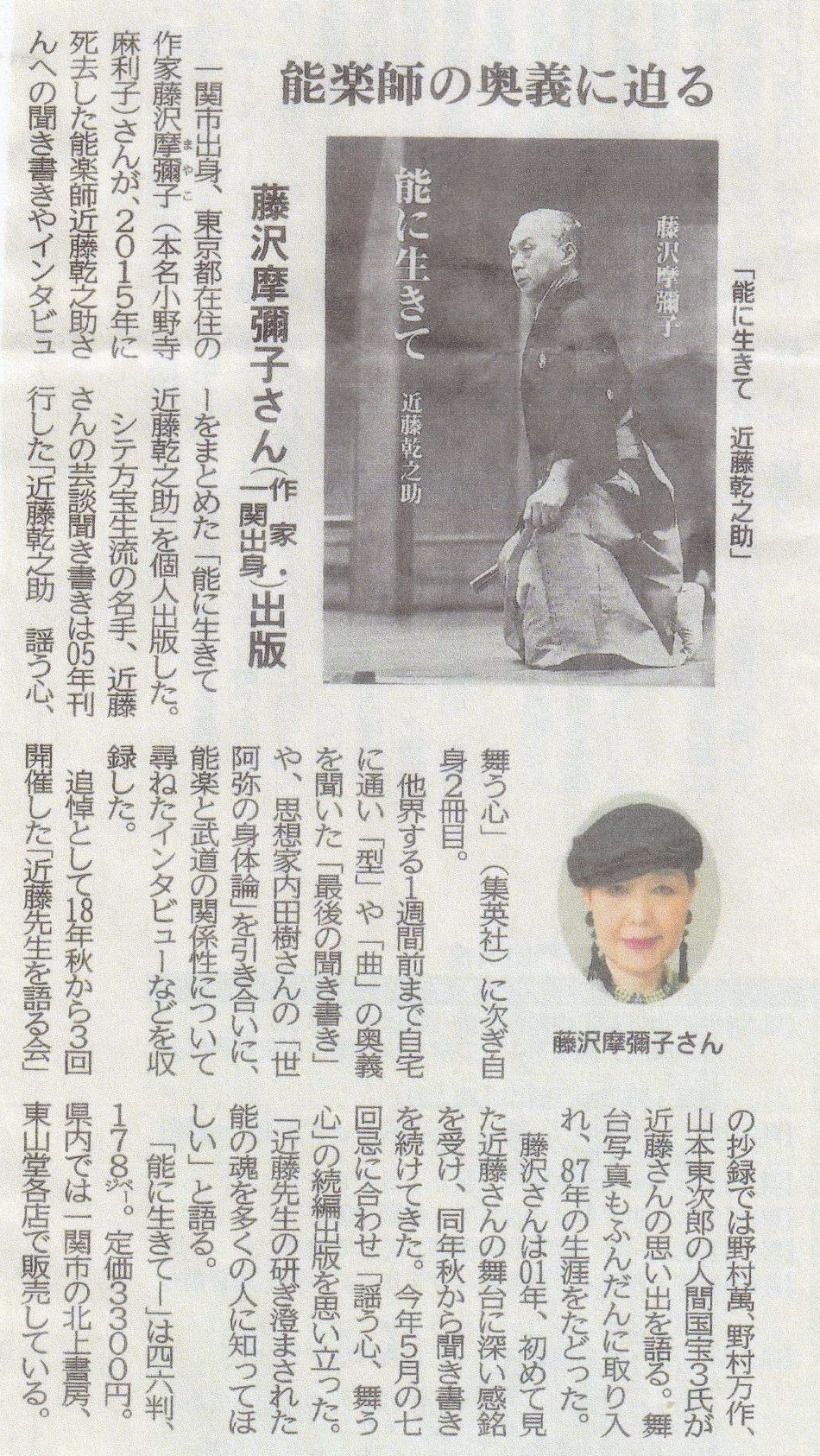 上梓した『能に生きて 近藤乾之助』(藤沢摩彌子著)。
